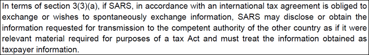 Section 3(3) of the TAA both empowers and obliges SARS, if in accordance with an “international tax agreement” to exchange information: