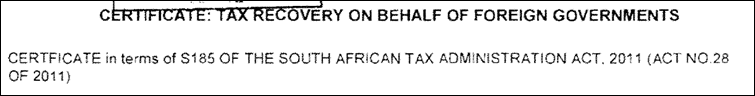 Step 2 – SARS issue a Notice of Collection in terms of section 185 (1) (b) of the TAA, per the certificate: